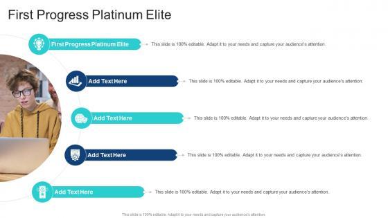 Introducing our well designed First Progress Platinum Elite In Powerpoint And Google Slides Cpb. This PowerPoint design presents information on topics like First Progress Platinum Elite. As it is predesigned it helps boost your confidence level. It also makes you a better presenter because of its high quality content and graphics. This PPT layout can be downloaded and used in different formats like PDF, PNG, and JPG. Not only this, it is available in both Standard Screen and Widescreen aspect ratios for your convenience. Therefore, click on the download button now to persuade and impress your audience. Our First Progress Platinum Elite In Powerpoint And Google Slides Cpb are topically designed to provide an attractive backdrop to any subject. Use them to look like a presentation pro.