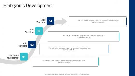 Presenting our innovatively designed set of slides titled Embryonic Development In Powerpoint And Google Slides Cpb. This completely editable PowerPoint graphic exhibits Embryonic Development that will help you convey the message impactfully. It can be accessed with Google Slides and is available in both standard screen and widescreen aspect ratios. Apart from this, you can download this well structured PowerPoint template design in different formats like PDF, JPG, and PNG. So, click the download button now to gain full access to this PPT design. Our Embryonic Development In Powerpoint And Google Slides Cpb are topically designed to provide an attractive backdrop to any subject. Use them to look like a presentation pro.