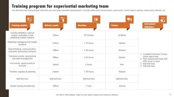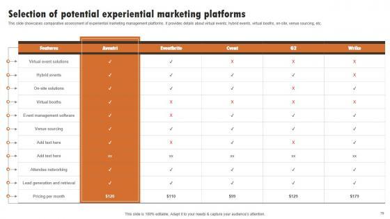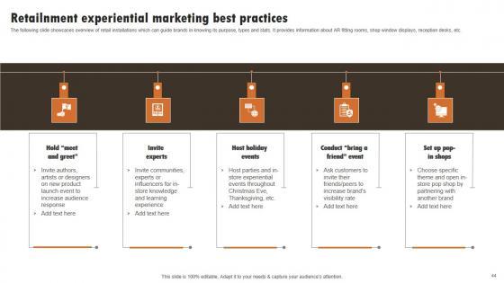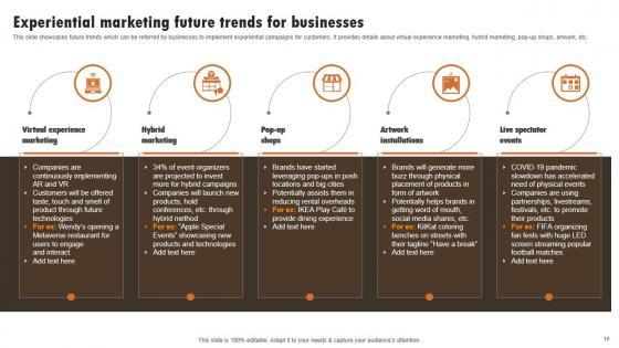 Use this Experiential Marketing Technique For Nurturing Emotional Brand Connections Complete Deck to ensure the business world gets to know you as a presentation expert with tremendous recall value. With its focus on providing the worlds best designs to highlight business ideas that have the potential to change the world, this PPT Template is sure to win you clients. The complete deck in ninty four slides is a compendium of information, structured in a manner that provides the best framework for a presentation. Use this completely editable and customizable presentation to make an impact and improve your order book. Download now. Our Experiential Marketing Technique For Nurturing Emotional Brand Connections Complete Deck are topically designed to provide an attractive backdrop to any subject. Use them to look like a presentation pro.