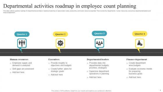This slide outlines quarterly roadmap for departmental activities in headcount planning to capture labor costs, productivity, and human resource expertise. This involves four departments human resources, executives, departmental leaders and finance department Pitch your topic with ease and precision using this Departmental Activities Roadmap In Employee Count Planning Download Pdf. This layout presents information on ZZZZZZZZZHuman Resources, Executives, Departmental LeadersZZZZZZZZZZZZZZZZZZZZZZZZZZZZZZZZZZZZZZZZZZZZZZZZZZ. It is also available for immediate download and adjustment. So, changes can be made in the color, design, graphics or any other component to create a unique layout. This slide outlines quarterly roadmap for departmental activities in headcount planning to capture labor costs, productivity, and human resource expertise. This involves four departments human resources, executives, departmental leaders and finance department
