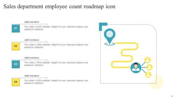Showcasing this set of slides titled Sales Department Employee Count Roadmap Icon Pictures Pdf. The topics addressed in these templates are Sales Department, Employee Count Roadmap Icon. All the content presented in this PPT design is completely editable. Download it and make adjustments in color, background, font etc. as per your unique business setting. Our Sales Department Employee Count Roadmap Icon Pictures Pdf are topically designed to provide an attractive backdrop to any subject. Use them to look like a presentation pro.