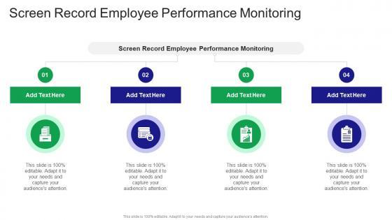 Introducing our well designed Screen Record Employee Performance Monitoring In Powerpoint And Google Slides Cpb. This PowerPoint design presents information on topics like Screen Record Employee Performance Monitoring. As it is predesigned it helps boost your confidence level. It also makes you a better presenter because of its high quality content and graphics. This PPT layout can be downloaded and used in different formats like PDF, PNG, and JPG. Not only this, it is available in both Standard Screen and Widescreen aspect ratios for your convenience. Therefore, click on the download button now to persuade and impress your audience. Our Screen Record Employee Performance Monitoring In Powerpoint And Google Slides Cpb are topically designed to provide an attractive backdrop to any subject. Use them to look like a presentation pro.