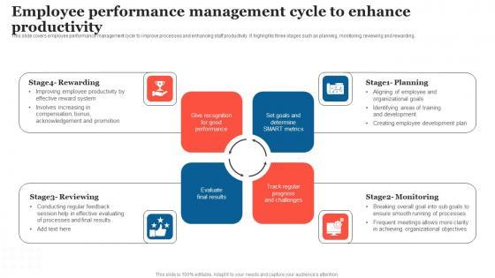 This slide covers employee performance management cycle to improve processes and enhancing staff productivity. It highlights three stages such as planning, monitoring, reviewing and rewarding. Slidegeeks has constructed Employee Performance Management Strategic Measures To Boost Employee Efficienc Designs Pdf after conducting extensive research and examination. These presentation templates are constantly being generated and modified based on user preferences and critiques from editors. Here, you will find the most attractive templates for a range of purposes while taking into account ratings and remarks from users regarding the content. This is an excellent jumping off point to explore our content and will give new users an insight into our top notch PowerPoint Templates. This slide covers employee performance management cycle to improve processes and enhancing staff productivity. It highlights three stages such as planning, monitoring, reviewing and rewarding.