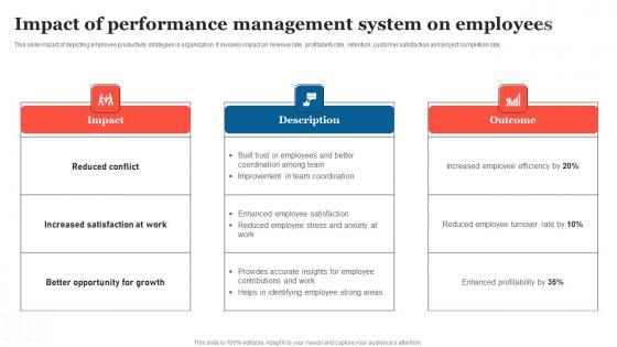 This slide impact of depicting employee productivity strategies in organization. It involves impact on revenue rate, profitability rate, retention, customer satisfaction and project completion rate. Want to ace your presentation in front of a live audience Our Impact Of Performance Management Strategic Measures To Boost Employee Efficienc Rules Pdf can help you do that by engaging all the users towards you. Slidegeeks experts have put their efforts and expertise into creating these impeccable powerpoint presentations so that you can communicate your ideas clearly. Moreover, all the templates are customizable, and easy to edit and downloadable. Use these for both personal and commercial use. This slide impact of depicting employee productivity strategies in organization. It involves impact on revenue rate, profitability rate, retention, customer satisfaction and project completion rate.