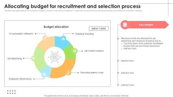 This slide shows budget distribution for recruitment and selection process in human resource management. It include major key components such as employer branding, job advertising and HR automation softwares. Boost your pitch with our creative Allocating Budget For Recruitment Employee Attraction And Competency Ppt Sample. Deliver an awe-inspiring pitch that will mesmerize everyone. Using these presentation templates you will surely catch everyones attention. You can browse the ppts collection on our website. We have researchers who are experts at creating the right content for the templates. So you do not have to invest time in any additional work. Just grab the template now and use them. This slide shows budget distribution for recruitment and selection process in human resource management. It include major key components such as employer branding, job advertising and HR automation softwares.