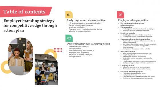 Do you have to make sure that everyone on your team knows about any specific topic I yes, then you should give Table Of Contents Employer Branding Strategy For Competitive Edge Through Action Information Pdf a try. Our experts have put a lot of knowledge and effort into creating this impeccable Table Of Contents Employer Branding Strategy For Competitive Edge Through Action Information Pdf. You can use this template for your upcoming presentations, as the slides are perfect to represent even the tiniest detail. You can download these templates from the Slidegeeks website and these are easy to edit. So grab these today. Our Table Of Contents Employer Branding Strategy For Competitive Edge Through Action Information Pdf are topically designed to provide an attractive backdrop to any subject. Use them to look like a presentation pro.