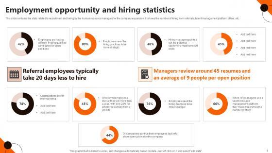 Pitch your topic with ease and precision using this Employment Opportunity And Hiring Statistics Themes Pdf. This layout presents information on Employment Opportunity, Hiring Statistics. It is also available for immediate download and adjustment. So, changes can be made in the color, design, graphics or any other component to create a unique layout. This slide contains the stats related to recruitment and hiring by the human resource managers for the company expansion. It shows the number of hiring from referrals, talent management platform offers, etc.