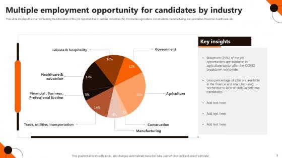 This slide displays the chart containing the bifurcation of the job opportunities in various industries percent. It includes agriculture, construction, manufacturing, transportation, financial, healthcare, etc. Pitch your topic with ease and precision using this Multiple Employment Opportunity For Candidates By Industry Mockup Pdf. This layout presents information on Government, Agriculture, Construction. It is also available for immediate download and adjustment. So, changes can be made in the color, design, graphics or any other component to create a unique layout. This slide displays the chart containing the bifurcation of the job opportunities in various industries percent. It includes agriculture, construction, manufacturing, transportation, financial, healthcare, etc.