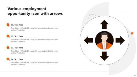 Pitch your topic with ease and precision using this Various Employment Opportunity Icon With Arrows Infographics Pdf. This layout presents information on Various Employment, Opportunity Icon With Arrows. It is also available for immediate download and adjustment. So, changes can be made in the color, design, graphics or any other component to create a unique layout. Our Various Employment Opportunity Icon With Arrows Infographics Pdf are topically designed to provide an attractive backdrop to any subject. Use them to look like a presentation pro.
