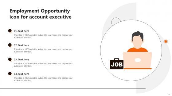 Pitch your topic with ease and precision using this Employment Opportunity Icon For Account Executive Portrait Pdf. This layout presents information on Employment Opportunity, Account Executive Portrait Pdf. It is also available for immediate download and adjustment. So, changes can be made in the color, design, graphics or any other component to create a unique layout. Our Employment Opportunity Icon For Account Executive Portrait Pdf are topically designed to provide an attractive backdrop to any subject. Use them to look like a presentation pro.