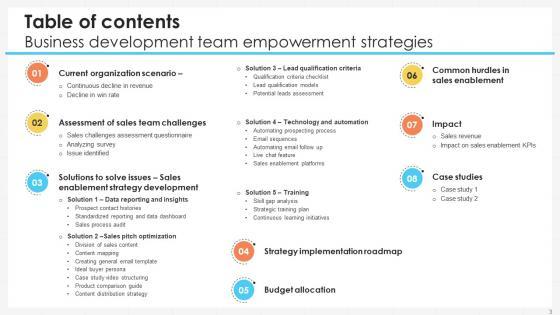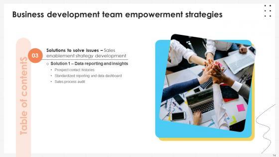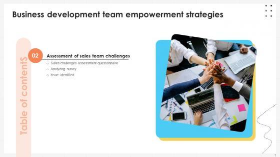 Want to ace your presentation in front of a live audience Our Table Of Contents For Business Development Team Empowerment Strategies SA SS V can help you do that by engaging all the users towards you. Slidegeeks experts have put their efforts and expertise into creating these impeccable powerpoint presentations so that you can communicate your ideas clearly. Moreover, all the templates are customizable, and easy-to-edit and downloadable. Use these for both personal and commercial use. Our Table Of Contents For Business Development Team Empowerment Strategies SA SS V are topically designed to provide an attractive backdrop to any subject. Use them to look like a presentation pro.