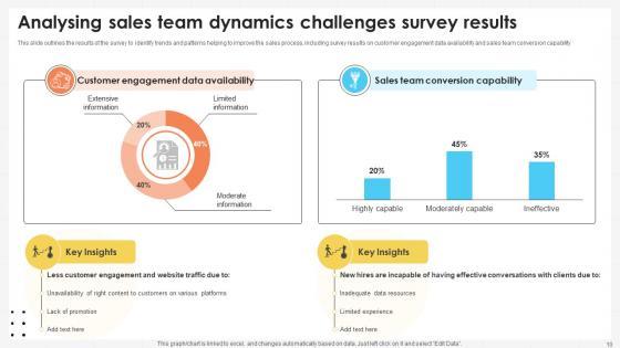 This slide outlines the results of the survey to identify trends and patterns helping to improve the sales process, including survey results on customer engagement data availability and sales team conversion capability. This modern and well-arranged Business Development Team Empowerment Analysing Sales Team Dynamics SA SS V provides lots of creative possibilities. It is very simple to customize and edit with the Powerpoint Software. Just drag and drop your pictures into the shapes. All facets of this template can be edited with Powerpoint, no extra software is necessary. Add your own material, put your images in the places assigned for them, adjust the colors, and then you can show your slides to the world, with an animated slide included. This slide outlines the results of the survey to identify trends and patterns helping to improve the sales process, including survey results on customer engagement data availability and sales team conversion capability.