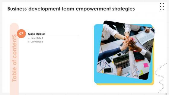 Use this Business Development Team Empowerment Strategies SA CD V to ensure the business world gets to know you as a presentation expert with tremendous recall value. With its focus on providing the worlds best designs to highlight business ideas that have the potential to change the world, this PPT Template is sure to win you clients. The complete deck in Fifty Eight slides is a compendium of information, structured in a manner that provides the best framework for a presentation. Use this completely editable and customizable presentation to make an impact and improve your order book. Download now. Our Business Development Team Empowerment Strategies SA CD V are topically designed to provide an attractive backdrop to any subject. Use them to look like a presentation pro.