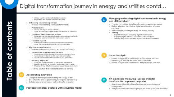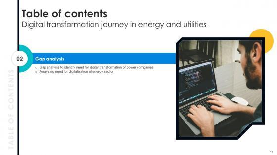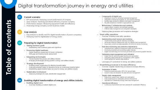 Take your projects to the next level with our ultimate collection of Current Scenario, Gap Analysis, Preparing For Digital Transformation. Slidegeeks has designed a range of layouts that are perfect for representing task or activity duration, keeping track of all your deadlines at a glance. Tailor these designs to your exact needs and give them a truly corporate look with your own brand colors they will make your projects stand out from the rest Our Table Of Contents Digital Transformation Journey In Energy And Utilities PPT PowerPoint DT SS V are topically designed to provide an attractive backdrop to any subject. Use them to look like a presentation pro.