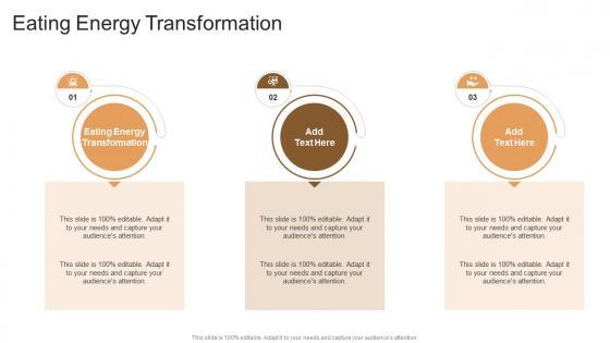 Introducing our well designed Eating Energy Transformation In Powerpoint And Google Slides Cpb. This PowerPoint design presents information on topics like Eating Energy Transformation. As it is predesigned it helps boost your confidence level. It also makes you a better presenter because of its high quality content and graphics. This PPT layout can be downloaded and used in different formats like PDF, PNG, and JPG. Not only this, it is available in both Standard Screen and Widescreen aspect ratios for your convenience. Therefore, click on the download button now to persuade and impress your audience. Our Eating Energy Transformation In Powerpoint And Google Slides Cpb are topically designed to provide an attractive backdrop to any subject. Use them to look like a presentation pro.