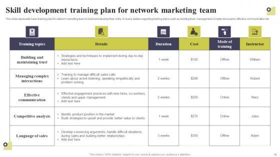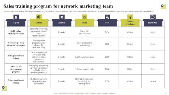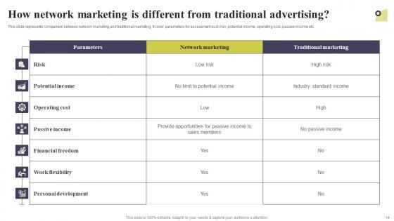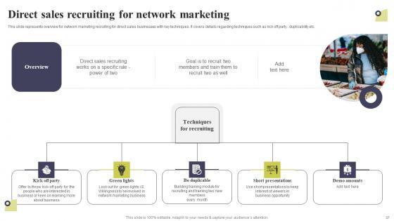 This presentation deck contains sixty professionally designed templates that eliminate the hassle of creating visually appealing presentations for you. It is your perfect option to communicate your thoughts in an easy-to-understand and effective manner. This Multi Level Marketing Techniques To Attract And Engage Potential Customers Complete Deck comes with a wide range of features like high-quality, graphics and 100 percent customizable layout. Graphs, charts, and polls are attention-grabbing visually interactive elements of this presentation bundle that will lock the eye of spectators on the screen. It also contains text styles, colors, background themes, and other design elements that perfectly complement each other and create a stunning template bundle. Take advantage of this PowerPoint Set to upgrade your presentation game and steer back your competitors. Our Multi Level Marketing Techniques To Attract And Engage Potential Customers Complete Deck are topically designed to provide an attractive backdrop to any subject. Use them to look like a presentation pro.