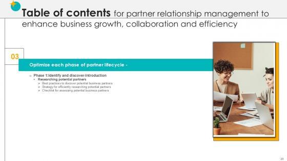 You will save yourself your energy and hours of time when you choose to use this impactful PowerPoint Deck. This Partner Relationship Management To Enhance Business Growth Collaboration And Efficiency Ppt Slide has been tailor-made to your business needs which ensures that you will always be prepared for that next meeting. Worry can not touch you when you present in your area of expertise using this PPT Template Bundle. With a modern design and easy to follow structure, this PowerPoint Presentation has one hundred three slides, which ensures that you can cover you need to without much work. Create your next presentation using this PPT Theme to deliver a memorable performance. Our Partner Relationship Management To Enhance Business Growth Collaboration And Efficiency Ppt Slide are topically designed to provide an attractive backdrop to any subject. Use them to look like a presentation pro.