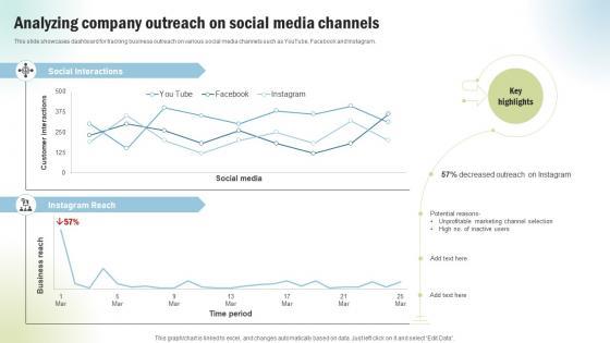This slide showcases dashboard for tracking business outreach on various social media channels such as YouTube, Facebook and Instagram. Do you have to make sure that everyone on your team knows about any specific topic I yes, then you should give Marketing Project Performance Benchmarking To Enhance Analyzing Company Outreach CRP SS V a try. Our experts have put a lot of knowledge and effort into creating this impeccable Marketing Project Performance Benchmarking To Enhance Analyzing Company Outreach CRP SS V. You can use this template for your upcoming presentations, as the slides are perfect to represent even the tiniest detail. You can download these templates from the Slidegeeks website and these are easy to edit. So grab these today This slide showcases dashboard for tracking business outreach on various social media channels such as YouTube, Facebook and Instagram.