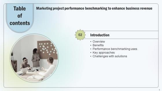 Whether you have daily or monthly meetings, a brilliant presentation is necessary. Table Of Contents For Marketing Project Performance Benchmarking To Enhance Business Revenue CRP SS V can be your best option for delivering a presentation. Represent everything in detail using Table Of Contents For Marketing Project Performance Benchmarking To Enhance Business Revenue CRP SS V and make yourself stand out in meetings. The template is versatile and follows a structure that will cater to your requirements. All the templates prepared by Slidegeeks are easy to download and edit. Our research experts have taken care of the corporate themes as well. So, give it a try and see the results. Our Table Of Contents For Marketing Project Performance Benchmarking To Enhance Business Revenue CRP SS V are topically designed to provide an attractive backdrop to any subject. Use them to look like a presentation pro.