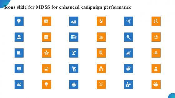 Help your business to create an attention-grabbing presentation using our Icons Slide For MDSS For Enhanced Campaign Performance Download Pdf set of slides. The slide contains innovative icons that can be flexibly edited. Choose this Icons Slide For MDSS For Enhanced Campaign Performance Download Pdf template to create a satisfactory experience for your customers. Go ahead and click the download button. Our Icons Slide For MDSS For Enhanced Campaign Performance Download Pdf are topically designed to provide an attractive backdrop to any subject. Use them to look like a presentation pro.