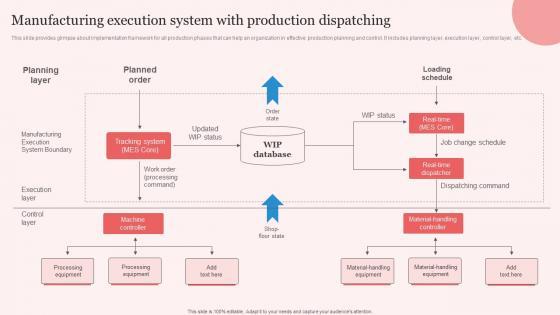 This slide provides glimpse about implementation framework for all production phases that can help an organization in effective production planning and control. It includes planning layer, execution layer, control layer, etc. If you are looking for a format to display your unique thoughts, then the professionally designed Manufacturing Enhancing Manufacturing Operation Effectiveness Demonstration Pdf is the one for you. You can use it as a Google Slides template or a PowerPoint template. Incorporate impressive visuals, symbols, images, and other charts. Modify or reorganize the text boxes as you desire. Experiment with shade schemes and font pairings. Alter, share or cooperate with other people on your work. Download Manufacturing Enhancing Manufacturing Operation Effectiveness Demonstration Pdf and find out how to give a successful presentation. Present a perfect display to your team and make your presentation unforgettable. This slide provides glimpse about implementation framework for all production phases that can help an organization in effective production planning and control. It includes planning layer, execution layer, control layer, etc.