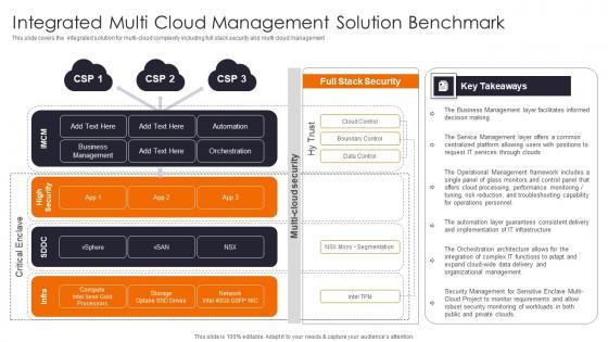 This slide covers the integrated solution for multi cloud complexity including full stack security and multi cloud management Presenting this PowerPoint presentation, titled Integrated Multi Cloud Enhancing Workload Efficiency Through Cloud Architecture Demonstration Pdf, with topics curated by our researchers after extensive research. This editable presentation is available for immediate download and provides attractive features when used. Download now and captivate your audience. Presenting this Integrated Multi Cloud Enhancing Workload Efficiency Through Cloud Architecture Demonstration Pdf. Our researchers have carefully researched and created these slides with all aspects taken into consideration. This is a completely customizable Integrated Multi Cloud Enhancing Workload Efficiency Through Cloud Architecture Demonstration Pdf that is available for immediate downloading. Download now and make an impact on your audience. Highlight the attractive features available with our PPTs. This slide covers the integrated solution for multi cloud complexity including full stack security and multi cloud management