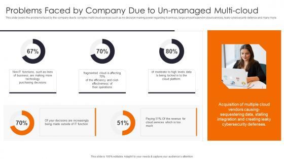 This slide covers the problems faced by the company due to complex multi cloud services such as no decision making power regarding it services, large amount spend in cloud services, leaky cybersecurity defence and many more. There are so many reasons you need a Problems Faced By Company Enhancing Workload Efficiency Through Cloud Architecture Topics Pdf. The first reason is you can not spend time making everything from scratch, Thus, Slidegeeks has made presentation templates for you too. You can easily download these templates from our website easily. This slide covers the problems faced by the company due to complex multi cloud services such as no decision making power regarding it services, large amount spend in cloud services, leaky cybersecurity defence and many more.
