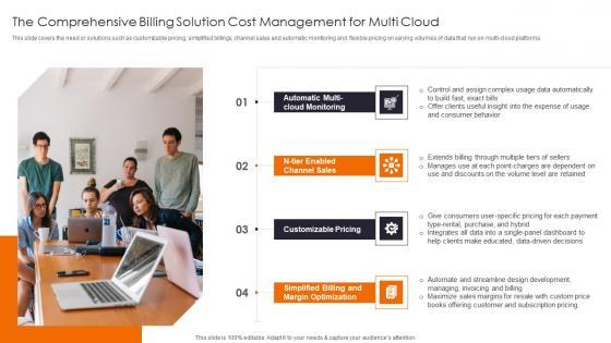 This slide covers the need or solutions such as customizable pricing, simplified billings, channel sales and automatic monitoring and flexible pricing on varying volumes of data that run on multi cloud platforms. If your project calls for a presentation, then Slidegeeks is your go to partner because we have professionally designed, easy to edit templates that are perfect for any presentation. After downloading, you can easily edit The Comprehensive Billing Enhancing Workload Efficiency Through Cloud Architecture Slides Pdf and make the changes accordingly. You can rearrange slides or fill them with different images. Check out all the handy templates This slide covers the need or solutions such as customizable pricing, simplified billings, channel sales and automatic monitoring and flexible pricing on varying volumes of data that run on multi cloud platforms.