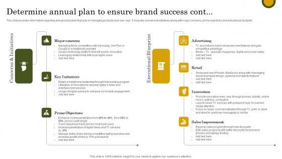 This slide provides information regarding annual brand plan that aids in managing products year over year. It includes PandL forecast analysis, growth drivers, risks, growth restraints, etc. Formulating a presentation can take up a lot of effort and time, so the content and message should always be the primary focus. The visuals of the PowerPoint can enhance the presenters message, so our Determine Annual Plan Ensure Apple Branding Strategy To Become Market Leader Inspiration Pdf was created to help save time. Instead of worrying about the design, the presenter can concentrate on the message while our designers work on creating the ideal templates for whatever situation is needed. Slidegeeks has experts for everything from amazing designs to valuable content, we have put everything into Determine Annual Plan Ensure Apple Branding Strategy To Become Market Leader Inspiration Pdf This slide provides information regarding annual brand plan that aids in managing products year over year. It includes PandL forecast analysis, growth drivers, risks, growth restraints, etc.