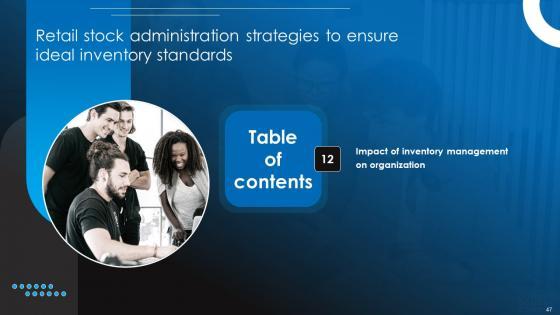 Do you have an important presentation coming up Are you looking for something that will make your presentation stand out from the rest Look no further than Table Of Contents For Retail Stock Administration Strategies To Ensure Ideal Inventory Standards Tips Pdf. With our professional designs, you can trust that your presentation will pop and make delivering it a smooth process. And with Slidegeeks, you can trust that your presentation will be unique and memorable. So why wait Grab Table Of Contents For Retail Stock Administration Strategies To Ensure Ideal Inventory Standards Tips Pdf today and make your presentation stand out from the rest. Our Table Of Contents For Retail Stock Administration Strategies To Ensure Ideal Inventory Standards Tips Pdf are topically designed to provide an attractive backdrop to any subject. Use them to look like a presentation pro.