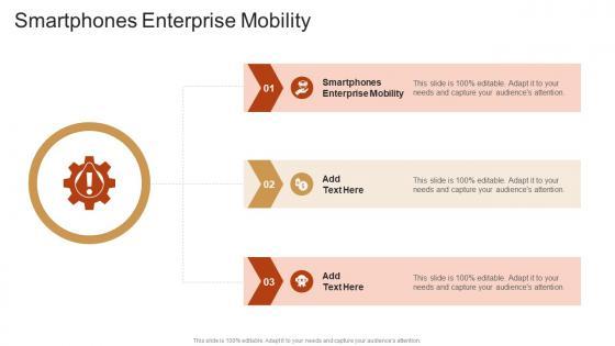 Presenting our innovatively-designed set of slides titled Smartphones Enterprise Mobility In Powerpoint And Google Slides Cpb. This completely editable PowerPoint graphic exhibits Smartphones Enterprise Mobility that will help you convey the message impactfully. It can be accessed with Google Slides and is available in both standard screen and widescreen aspect ratios. Apart from this, you can download this well-structured PowerPoint template design in different formats like PDF, JPG, and PNG. So, click the download button now to gain full access to this PPT design. Our Smartphones Enterprise Mobility In Powerpoint And Google Slides Cpb are topically designed to provide an attractive backdrop to any subject. Use them to look like a presentation pro.
