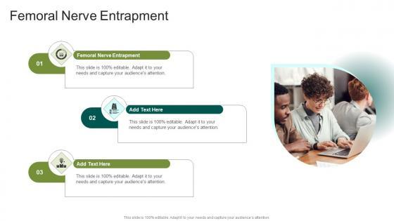Introducing our well designed Femoral Nerve Entrapment In Powerpoint And Google Slides Cpb. This PowerPoint design presents information on topics like Femoral Nerve Entrapment. As it is predesigned it helps boost your confidence level. It also makes you a better presenter because of its high quality content and graphics. This PPT layout can be downloaded and used in different formats like PDF, PNG, and JPG. Not only this, it is available in both Standard Screen and Widescreen aspect ratios for your convenience. Therefore, click on the download button now to persuade and impress your audience. Our Femoral Nerve Entrapment In Powerpoint And Google Slides Cpb are topically designed to provide an attractive backdrop to any subject. Use them to look like a presentation pro.