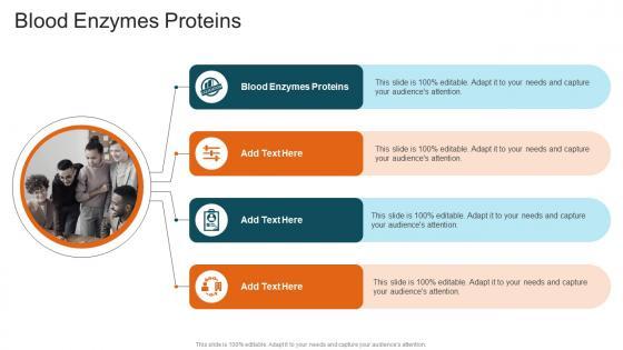 Introducing our well designed Blood Enzymes Proteins In Powerpoint And Google Slides Cpb. This PowerPoint design presents information on topics like Blood Enzymes Proteins. As it is predesigned it helps boost your confidence level. It also makes you a better presenter because of its high quality content and graphics. This PPT layout can be downloaded and used in different formats like PDF, PNG, and JPG. Not only this, it is available in both Standard Screen and Widescreen aspect ratios for your convenience. Therefore, click on the download button now to persuade and impress your audience. Our Blood Enzymes Proteins In Powerpoint And Google Slides Cpb are topically designed to provide an attractive backdrop to any subject. Use them to look like a presentation pro.