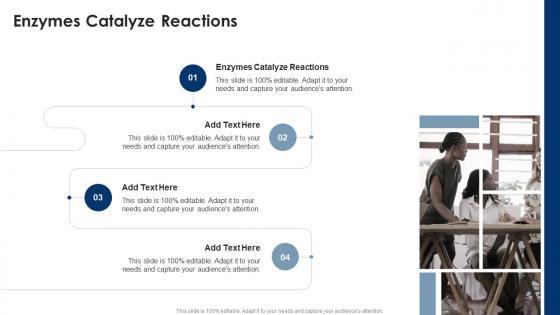Introducing our well designed Enzymes Catalyze Reactions In Powerpoint And Google Slides Cpb. This PowerPoint design presents information on topics like Enzymes Catalyze Reactions. As it is predesigned it helps boost your confidence level. It also makes you a better presenter because of its high quality content and graphics. This PPT layout can be downloaded and used in different formats like PDF, PNG, and JPG. Not only this, it is available in both Standard Screen and Widescreen aspect ratios for your convenience. Therefore, click on the download button now to persuade and impress your audience. Our Enzymes Catalyze Reactions In Powerpoint And Google Slides Cpb are topically designed to provide an attractive backdrop to any subject. Use them to look like a presentation pro.