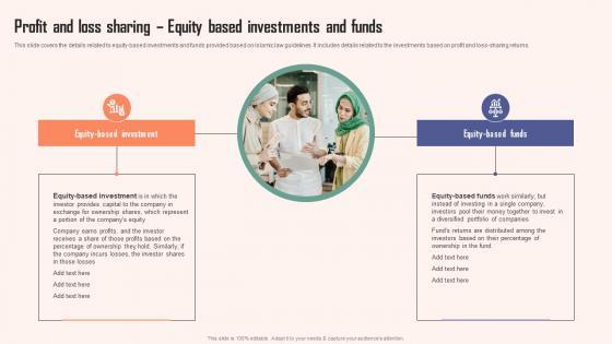 This slide covers the details related to equity-based investments and funds provided based on Islamic law guidelines. It includes details related to the investments based on profit and loss-sharing returns. Whether you have daily or monthly meetings, a brilliant presentation is necessary. Profit And Loss Sharing Equity Based Comprehensive Guide Islamic Slides PDF can be your best option for delivering a presentation. Represent everything in detail using Profit And Loss Sharing Equity Based Comprehensive Guide Islamic Slides PDF and make yourself stand out in meetings. The template is versatile and follows a structure that will cater to your requirements. All the templates prepared by Slidegeeks are easy to download and edit. Our research experts have taken care of the corporate themes as well. So, give it a try and see the results. This slide covers the details related to equity-based investments and funds provided based on Islamic law guidelines. It includes details related to the investments based on profit and loss-sharing returns.