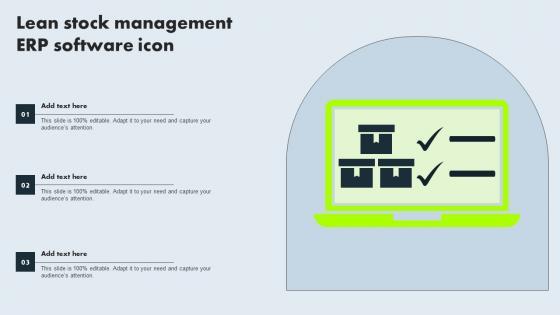 Showcasing this set of slides titled Lean Stock Management Erp Software Icon Guidelines Pdf. The topics addressed in these templates are Lean Stock Management, Erp Software Icon. All the content presented in this PPT design is completely editable. Download it and make adjustments in color, background, font etc. as per your unique business setting. Our Lean Stock Management Erp Software Icon Guidelines Pdf are topically designed to provide an attractive backdrop to any subject. Use them to look like a presentation pro.