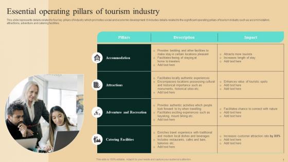 This slide represents details related to four key pillars of industry which promotes social and economic development. It includes details related to the significant operating pillars of tourism industry such as accommodation, attractions, adventure and catering facilities. Formulating a presentation can take up a lot of effort and time, so the content and message should always be the primary focus. The visuals of the PowerPoint can enhance the presenters message, so our Guide To Winning Tourism Essential Operating Pillars Of Tourism Industry Portrait Pdf was created to help save time. Instead of worrying about the design, the presenter can concentrate on the message while our designers work on creating the ideal templates for whatever situation is needed. Slidegeeks has experts for everything from amazing designs to valuable content, we have put everything into Guide To Winning Tourism Essential Operating Pillars Of Tourism Industry Portrait Pdf This slide represents details related to four key pillars of industry which promotes social and economic development. It includes details related to the significant operating pillars of tourism industry such as accommodation, attractions, adventure and catering facilities.