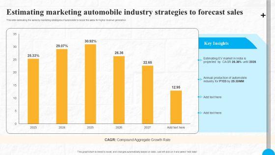This slide estimating the sales by marketing strategies of automobile to boost the sales for higher revenue generation. Showcasing this set of slides titled Estimating Marketing Automobile Industry Strategies To Forecast Sales Professional PDF. The topics addressed in these templates are Estimating, Annual Production, Automobile Industry. All the content presented in this PPT design is completely editable. Download it and make adjustments in color, background, font etc. as per your unique business setting.
