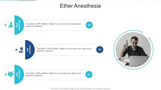Introducing our well designed Ether Anesthesia In Powerpoint And Google Slides Cpb. This PowerPoint design presents information on topics like Ether Anesthesia. As it is predesigned it helps boost your confidence level. It also makes you a better presenter because of its high quality content and graphics. This PPT layout can be downloaded and used in different formats like PDF, PNG, and JPG. Not only this, it is available in both Standard Screen and Widescreen aspect ratios for your convenience. Therefore, click on the download button now to persuade and impress your audience. Our Ether Anesthesia In Powerpoint And Google Slides Cpb are topically designed to provide an attractive backdrop to any subject. Use them to look like a presentation pro.