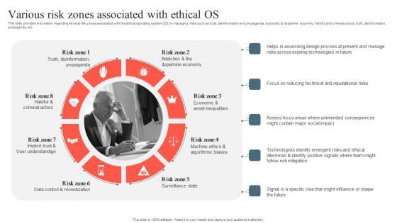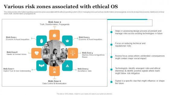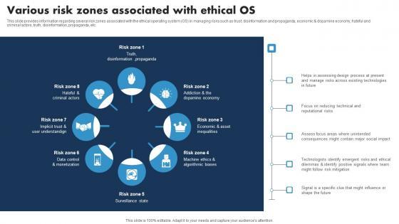 This slide provides information regarding several risk zones associated with the ethical operating system OS in managing risks such as trust, disinformation and propaganda, economic and dopamine economy, hateful and criminal actors, truth, disinformation, propaganda, etc. Do you have an important presentation coming up Are you looking for something that will make your presentation stand out from the rest Look no further than Various Risk Zones Associated With Ethical Os Responsible Tech Guide To Manage Designs Pdf. With our professional designs, you can trust that your presentation will pop and make delivering it a smooth process. And with Slidegeeks, you can trust that your presentation will be unique and memorable. So why wait Grab Various Risk Zones Associated With Ethical Os Responsible Tech Guide To Manage Designs Pdf today and make your presentation stand out from the rest. This slide provides information regarding several risk zones associated with the ethical operating system OS in managing risks such as trust, disinformation and propaganda, economic and dopamine economy, hateful and criminal actors, truth, disinformation, propaganda, etc.