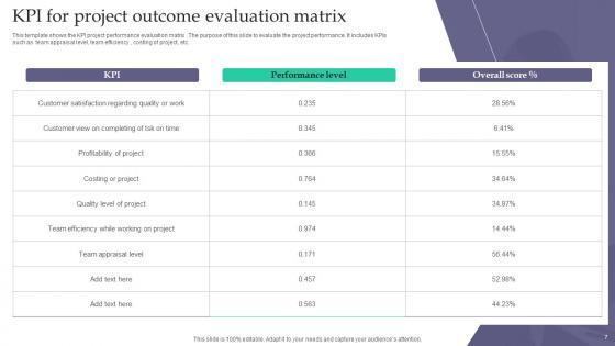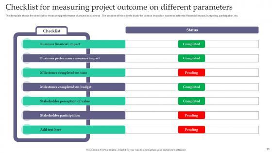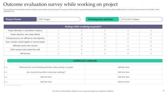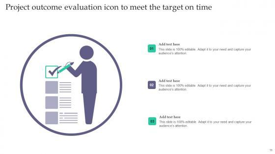 Share a great deal of information on the topic by deploying this Project Outcome Evaluation Ppt Powerpoint Presentation Complete Deck With Slides. Support your ideas and thought process with this prefabricated set. It includes a set of nineteen slides, all fully modifiable and editable. Each slide can be restructured and induced with the information and content of your choice. You can add or remove large content boxes as well, to make this PPT slideshow more personalized. Its high-quality graphics and visuals help in presenting a well-coordinated pitch. This PPT template is also a resourceful tool to take visual cues from and implement the best ideas to help your business grow and expand. The main attraction of this well-formulated deck is that everything is editable, giving you the freedom to adjust it to your liking and choice. Changes can be made in the background and theme as well to deliver an outstanding pitch. Therefore, click on the download button now to gain full access to this multifunctional set. Our Project Outcome Evaluation Ppt Powerpoint Presentation Complete Deck With Slides are topically designed to provide an attractive backdrop to any subject. Use them to look like a presentation pro.
