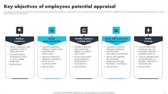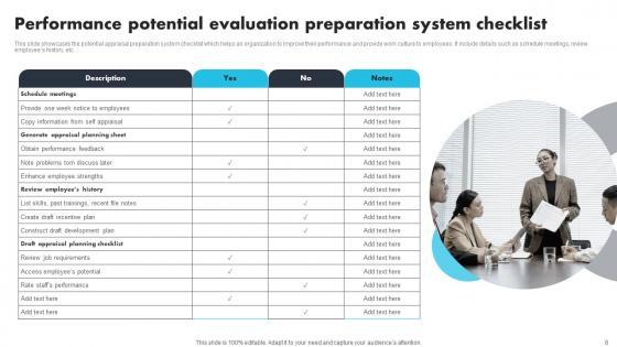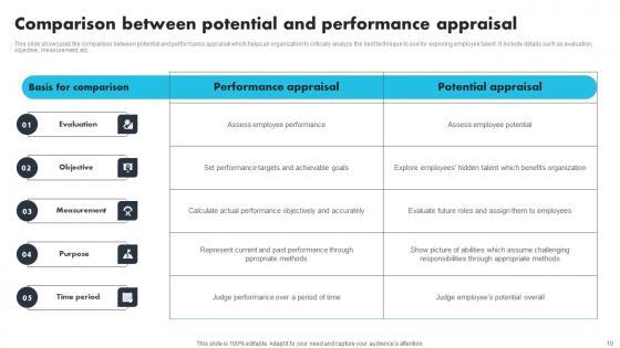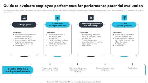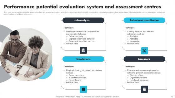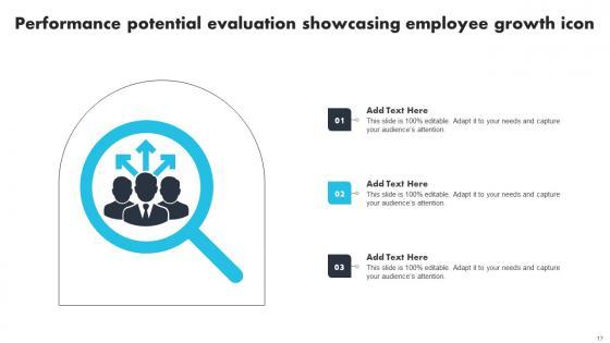 This Performance Potential Evaluation Ppt Powerpoint Presentation Complete Deck With Slides acts as backup support for your ideas, vision, thoughts, etc. Use it to present a thorough understanding of the topic. This PPT slideshow can be utilized for both in-house and outside presentations depending upon your needs and business demands. Entailing eighteen slides with a consistent design and theme, this template will make a solid use case. As it is intuitively designed, it suits every business vertical and industry. All you have to do is make a few tweaks in the content or any other component to design unique presentations. The biggest advantage of this complete deck is that it can be personalized multiple times once downloaded. The color, design, shapes, and other elements are free to modify to add personal touches. You can also insert your logo design in this PPT layout. Therefore a well-thought and crafted presentation can be delivered with ease and precision by downloading this Performance Potential Evaluation Ppt Powerpoint Presentation Complete Deck With Slides PPT slideshow. Our Performance Potential Evaluation Ppt Powerpoint Presentation Complete Deck With Slides are topically designed to provide an attractive backdrop to any subject. Use them to look like a presentation pro.