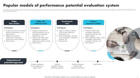 This slide showcases the popular models of potential appraisal system which helps an organization to develop employees for future assignments and provide potential rewards. It include details such as Philips NV Holland model, psychometric tests, etc. Pitch your topic with ease and precision using this Popular Models Of Performance Potential Evaluation System Icons Pdf. This layout presents information on Holland Model, Psychometric Tests, Review Appraisal Method. It is also available for immediate download and adjustment. So, changes can be made in the color, design, graphics or any other component to create a unique layout. This slide showcases the popular models of potential appraisal system which helps an organization to develop employees for future assignments and provide potential rewards. It include details such as Philips NV Holland model, psychometric tests, etc.