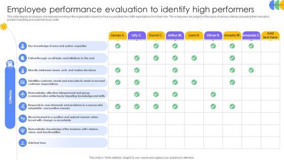 This slide depicts an analysis of employees working in the organization based on how successfully they fulfill expectations from their role. The employees are judged on the basis of various criterias assessing their execution, problem handling and customer focus skills. Do you have an important presentation coming up Are you looking for something that will make your presentation stand out from the rest Look no further than Driving Results Designing A Team Employee Performance Evaluation To Identify High. With our professional designs, you can trust that your presentation will pop and make delivering it a smooth process. And with Slidegeeks, you can trust that your presentation will be unique and memorable. So why wait Grab Driving Results Designing A Team Employee Performance Evaluation To Identify High today and make your presentation stand out from the rest This slide depicts an analysis of employees working in the organization based on how successfully they fulfill expectations from their role. The employees are judged on the basis of various criterias assessing their execution, problem handling and customer focus skills.