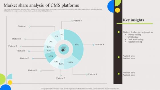 This slide represents the analysis of key players of content management system platforms in the market to help the organization in selecting the best CMS platform. It represents market share analysis of top CMS platforms. Retrieve professionally designed Market Share Analysis Of CMS Evaluation And Deployment Of Enhanced Inspiration Pdf to effectively convey your message and captivate your listeners. Save time by selecting pre made slideshows that are appropriate for various topics, from business to educational purposes. These themes come in many different styles, from creative to corporate, and all of them are easily adjustable and can be edited quickly. Access them as PowerPoint templates or as Google Slides themes. You do not have to go on a hunt for the perfect presentation because Slidegeeks got you covered from everywhere. This slide represents the analysis of key players of content management system platforms in the market to help the organization in selecting the best CMS platform. It represents market share analysis of top CMS platforms.