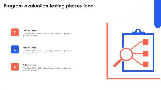 Pitch your topic with ease and precision using this Program Evaluation Testing Phases Icon Sample Pdf This layout presents information on Program Evaluation, Testing Phases Icon It is also available for immediate download and adjustment. So, changes can be made in the color, design, graphics or any other component to create a unique layout. Our Program Evaluation Testing Phases Icon Sample Pdf are topically designed to provide an attractive backdrop to any subject. Use them to look like a presentation pro.