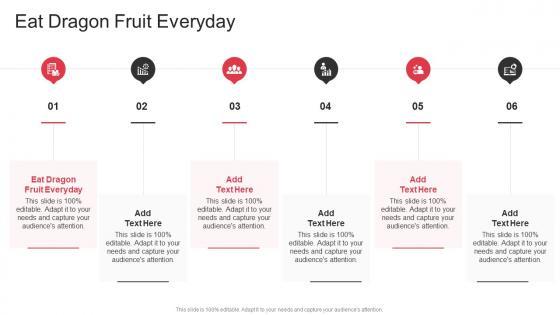 Introducing our well designed Eat Dragon Fruit Everyday In Powerpoint And Google Slides Cpb. This PowerPoint design presents information on topics like Eat Dragon Fruit Everyday. As it is predesigned it helps boost your confidence level. It also makes you a better presenter because of its high-quality content and graphics. This PPT layout can be downloaded and used in different formats like PDF, PNG, and JPG. Not only this, it is available in both Standard Screen and Widescreen aspect ratios for your convenience. Therefore, click on the download button now to persuade and impress your audience. Our Eat Dragon Fruit Everyday In Powerpoint And Google Slides Cpb are topically designed to provide an attractive backdrop to any subject. Use them to look like a presentation pro.