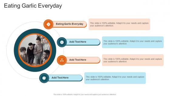 Presenting our innovatively designed set of slides titled Eating Garlic Everyday In Powerpoint And Google Slides Cpb. This completely editable PowerPoint graphic exhibits Eating Garlic Everyday that will help you convey the message impactfully. It can be accessed with Google Slides and is available in both standard screen and widescreen aspect ratios. Apart from this, you can download this well structured PowerPoint template design in different formats like PDF, JPG, and PNG. So, click the download button now to gain full access to this PPT design. Our Eating Garlic Everyday In Powerpoint And Google Slides Cpb are topically designed to provide an attractive backdrop to any subject. Use them to look like a presentation pro.