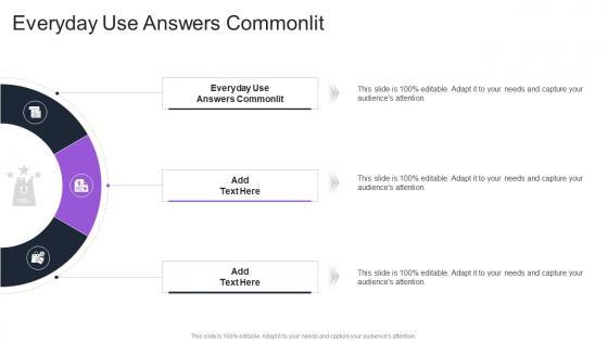 Presenting our innovatively designed set of slides titled Everyday Use Answers Commonlit In Powerpoint And Google Slides Cpb. This completely editable PowerPoint graphic exhibits Everyday Use Answers Commonlit that will help you convey the message impactfully. It can be accessed with Google Slides and is available in both standard screen and widescreen aspect ratios. Apart from this, you can download this well-structured PowerPoint template design in different formats like PDF, JPG, and PNG. So, click the download button now to gain full access to this PPT design. Our Everyday Use Answers Commonlit In Powerpoint And Google Slides Cpb are topically designed to provide an attractive backdrop to any subject. Use them to look like a presentation pro.