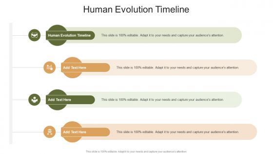 Presenting our innovatively-designed set of slides titled Human Evolution Timeline In Powerpoint And Google Slides Cpb. This completely editable PowerPoint graphic exhibits Human Evolution Timeline that will help you convey the message impactfully. It can be accessed with Google Slides and is available in both standard screen and widescreen aspect ratios. Apart from this, you can download this well-structured PowerPoint template design in different formats like PDF, JPG, and PNG. So, click the download button now to gain full access to this PPT design. Our Human Evolution Timeline In Powerpoint And Google Slides Cpb are topically designed to provide an attractive backdrop to any subject. Use them to look like a presentation pro.